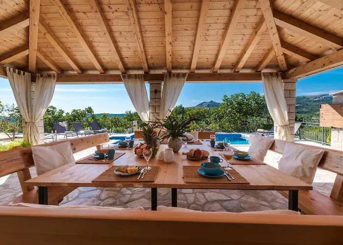The 4-bedroom Villa Paulina is located 15 minutes' drive from St. Jakov Beach and provides an outdoor swimming pool, ensuring a relaxing stay. The villa includes parking and a terrace with views of the sea.